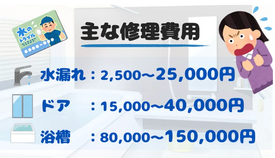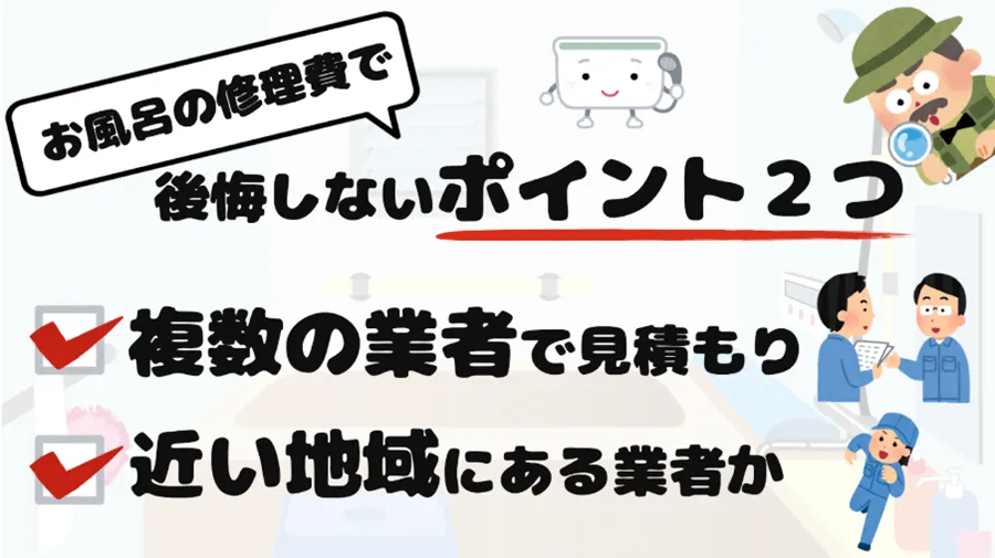 お風呂の修理で後悔しない費用ポイントは以下の2つです。
