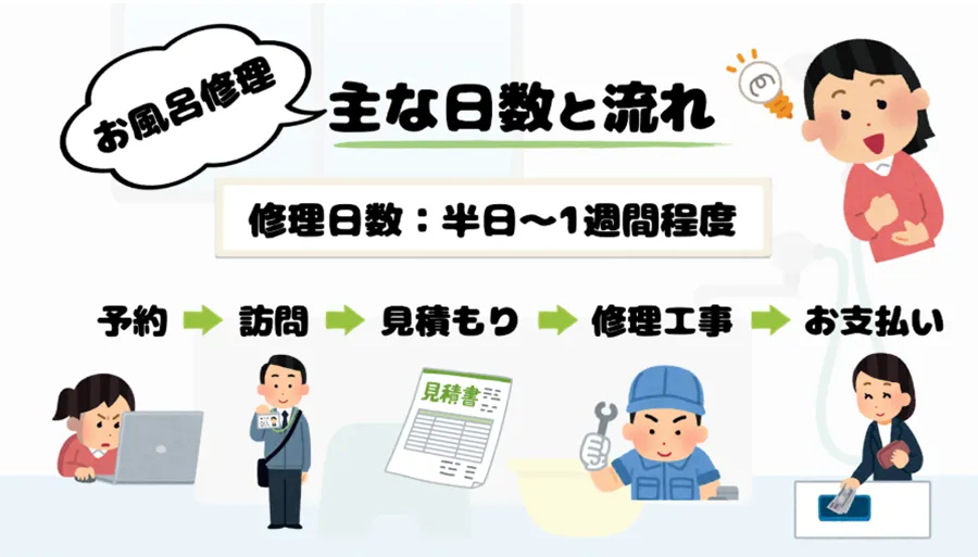 お風呂の修理までの主な日数と流れ