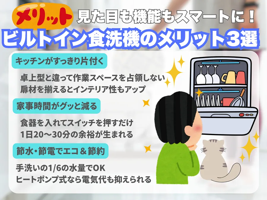 ここでは、ビルトイン食洗機を導入することで得られる主なメリットをご紹介します。