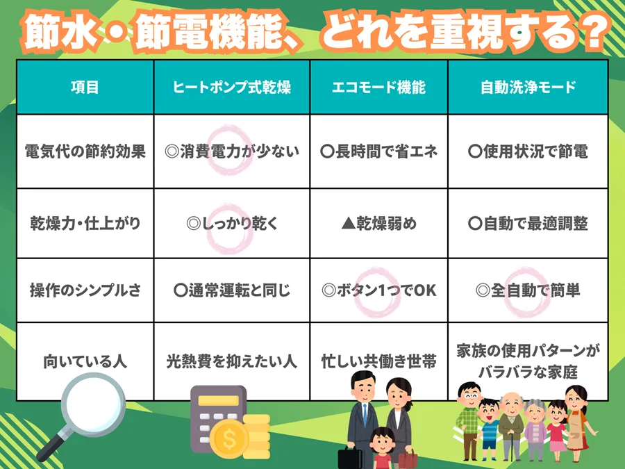 また、エコモードや自動洗浄モードを活用すれば、汚れ具合に応じて水や電気の使用量を調整してくれるため、無駄なコストがかかりません。