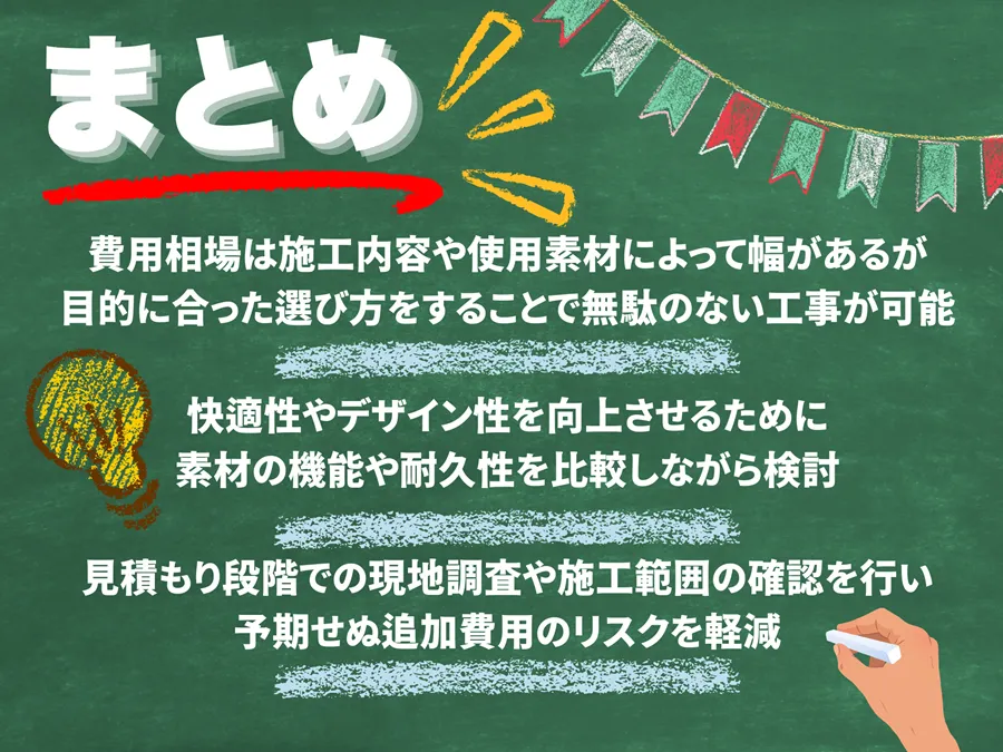 - 素材ごとの「施工コストと耐久性」を比較すること