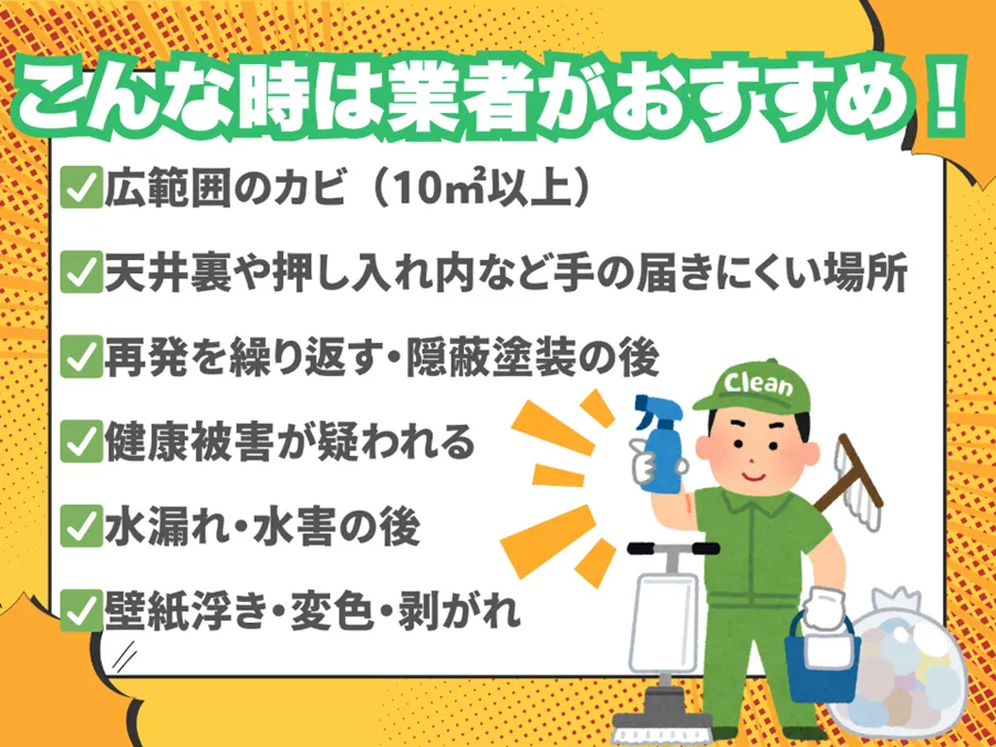 カビの程度や壁の状態、今後の住環境の改善計画などに応じて、どちらの業者が適しているかを判断しましょう。施工目的に応じた選択が、後悔のないカビ対策・住まいの改善につながります。