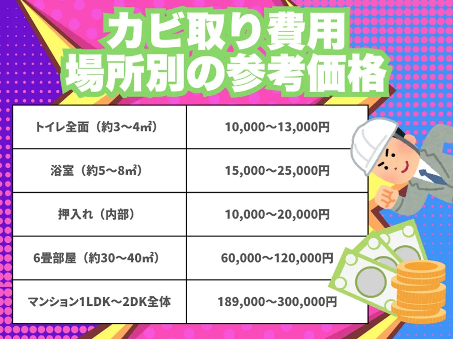 カビ取り施工の種類と種類別参考価格