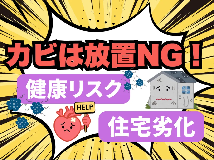 健康面だけでなく、住まいへのリスクを防ぐためにも、カビを早い段階で発見し、適切に処理することが重要です。