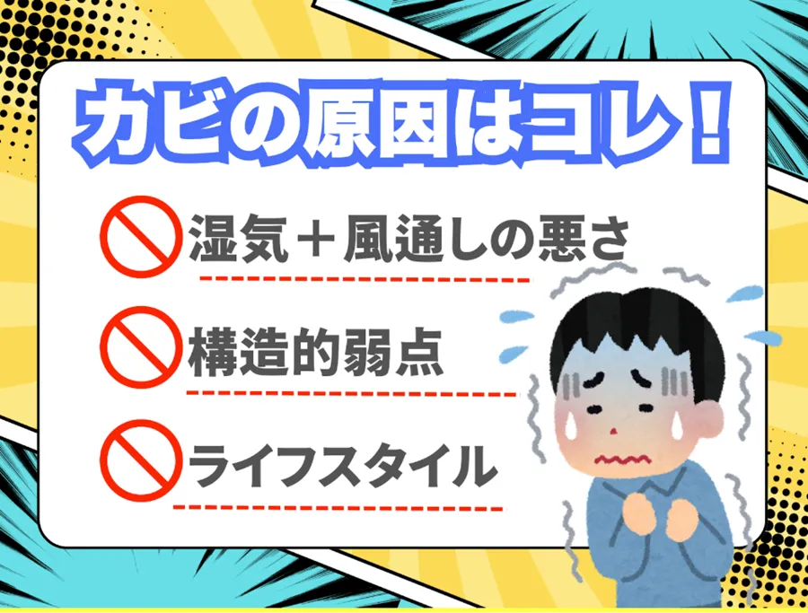 カビの発生には必ず理由があり、その原因を正しく知り、環境を改めることが再発防止の鍵になります。