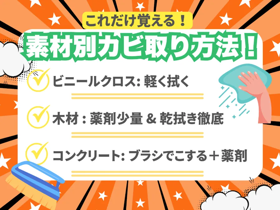壁の素材別カビ取り方法(クロス・木・コンクリートなど)