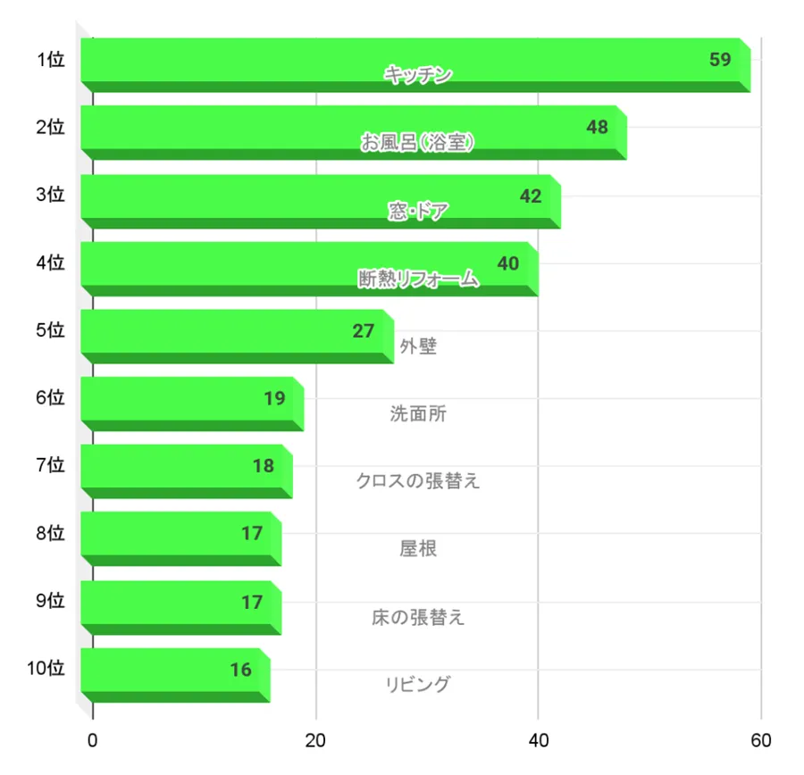 といった複数の要因が重なっています。その結果、これまで「水まわり」が中心だった人気領域に、 “窓・断熱”が本格的に並び始める転換点 が見えてきました。
