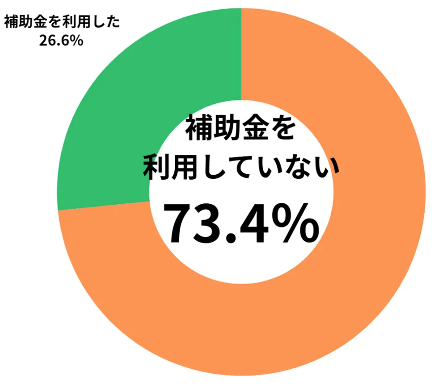また、補助金の利用率は 26.6% にとどまり、「制度を知らない」「手続きが難しい」などの理由から、利用が広がりきっていない現状も浮き彫りになりました。ただし、利用者の中では自治体補助金や窓リノベなど、省エネ関連支援が多く選ばれています。
