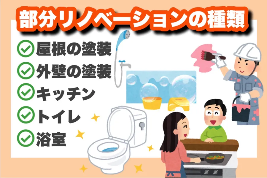それぞれのリノベーションによって特徴や費用に違いが出てきます。