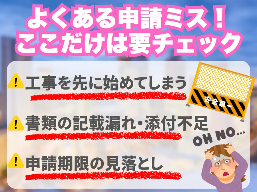 どれほど対象要件を満たしていても、申請手続きを誤れば補助は受けられません。