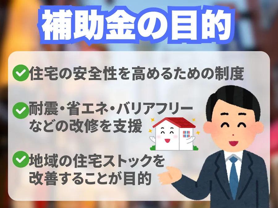 単にお金がもらえる仕組みというだけでなく、その背景には市民の暮らしを守り、住宅の質を向上させるという意図が込められています。