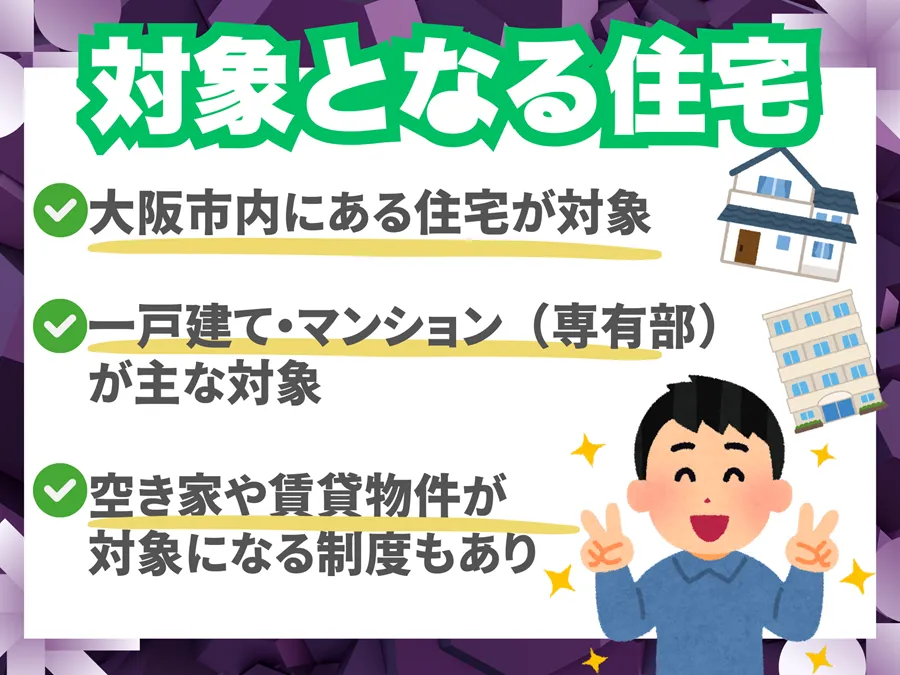 大阪市のリフォーム補助金制度では、対象となる住宅の種類や所有形態が制度ごとに定められています。