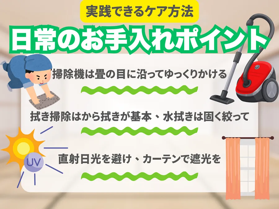 消耗品である畳は、新調したら長く快適に使いたいものです。