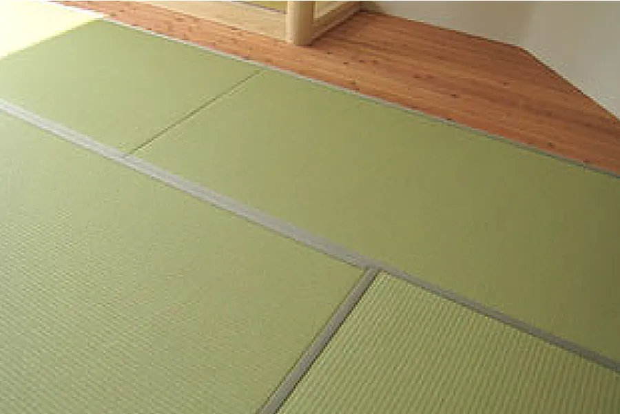 昔ながらの畳は、藁床にイ草の畳表を張った構造が主流です。 この自然素材の畳は、肌触りが柔らかく空気を通しやすいため、湿度調整に優れています。