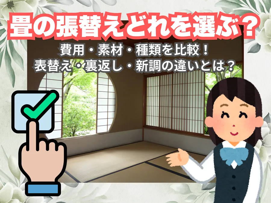 畳の張替えは、施工方法や畳の素材によって費用や手間に違いがあります。 自然素材・化学素材・縁なし畳のどれを選ぶか、住まいと生活スタイルに合わせた選択が重要です。