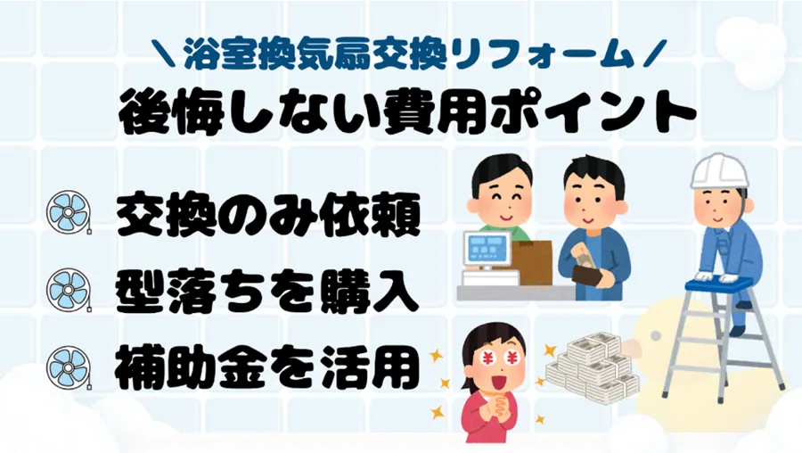 浴室換気扇交換のリフォーム費用で後悔しないためには、次のようなポイントがあります。