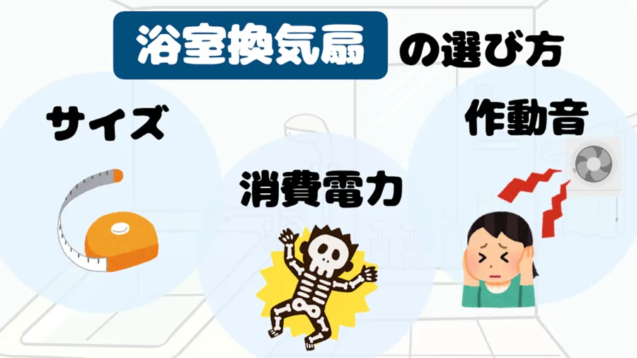 浴室換気扇の選び方で確認するポイントは以下になります。