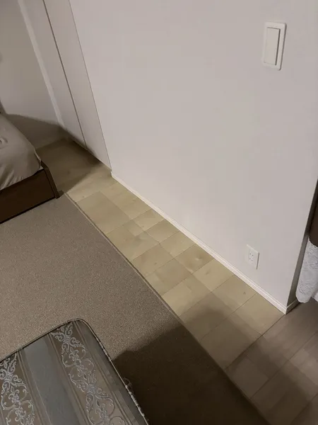 先程言及した、床の違いの部分です。電気を消して撮りましたが、良く見れば違いが分かってしまいますが、これは仕方ありません。