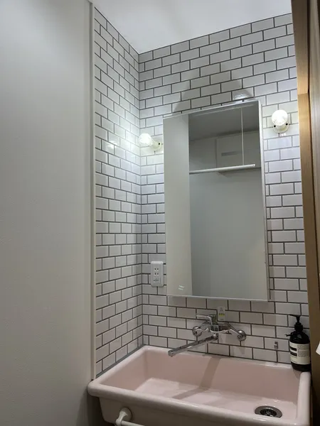 主人の要望で洗面台は以前使用していたものを再利用してもらいましたが、汚れが付きやすいのが気になります。