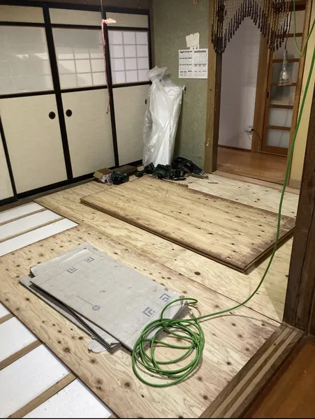 かなり古い家なのですが、物置として使っている部屋の床が長年の経過と重みに負けてしまい、最終的には腐って抜けました。根太からやり直していくのと、これを機に掃除もして使いやすい部屋へ変更をしていきたくリフォームしました。