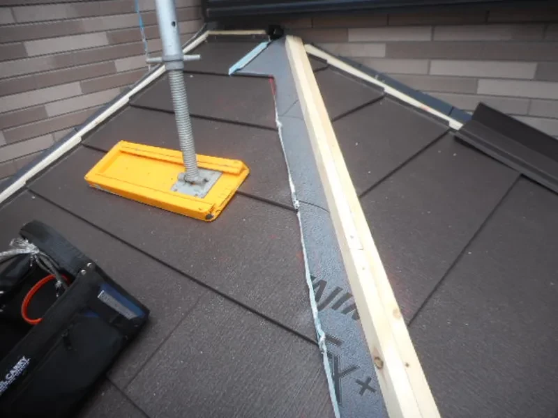 屋根や外壁の上部工事ではお客様の目が届かない部分も丁寧に仕上げます。金属サイディングの施工では、一本一本の材料を曲げて壁の形状にぴったり合わせ、真っすぐに取り付けています。通常は単価を抑えるため曲がったまま雑にビス止めするところを、時間と手間をかけて丁寧に調整します。過去には、当社が施工した家の隣で他社が同じ施工したところ、金属サイディングが曲がったまま雑に取り付けられていました。それを見た隣のお客様が大変不満を持ち「なぜあちらはこんなにまっすぐきれいなのに、こちらは曲がっているのか」と怒ってしまい、結局全部剥がしてやり直したそうです。一方、当社では一本一本の材料を丁寧に曲げて壁の形にぴったり合わせ、真っすぐに取り付けています。お客様の目に見える部分はもちろん、見えにくい細部まで手を抜かず仕上げます。